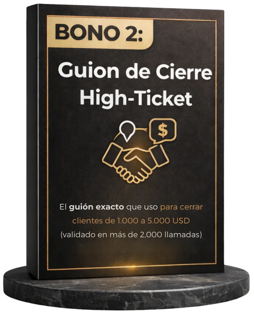 Obtienes el guion exacto (validado en +2.000 llamadas) que uso para cerrar ventas High Ticket con hasta un 50% de cierre.